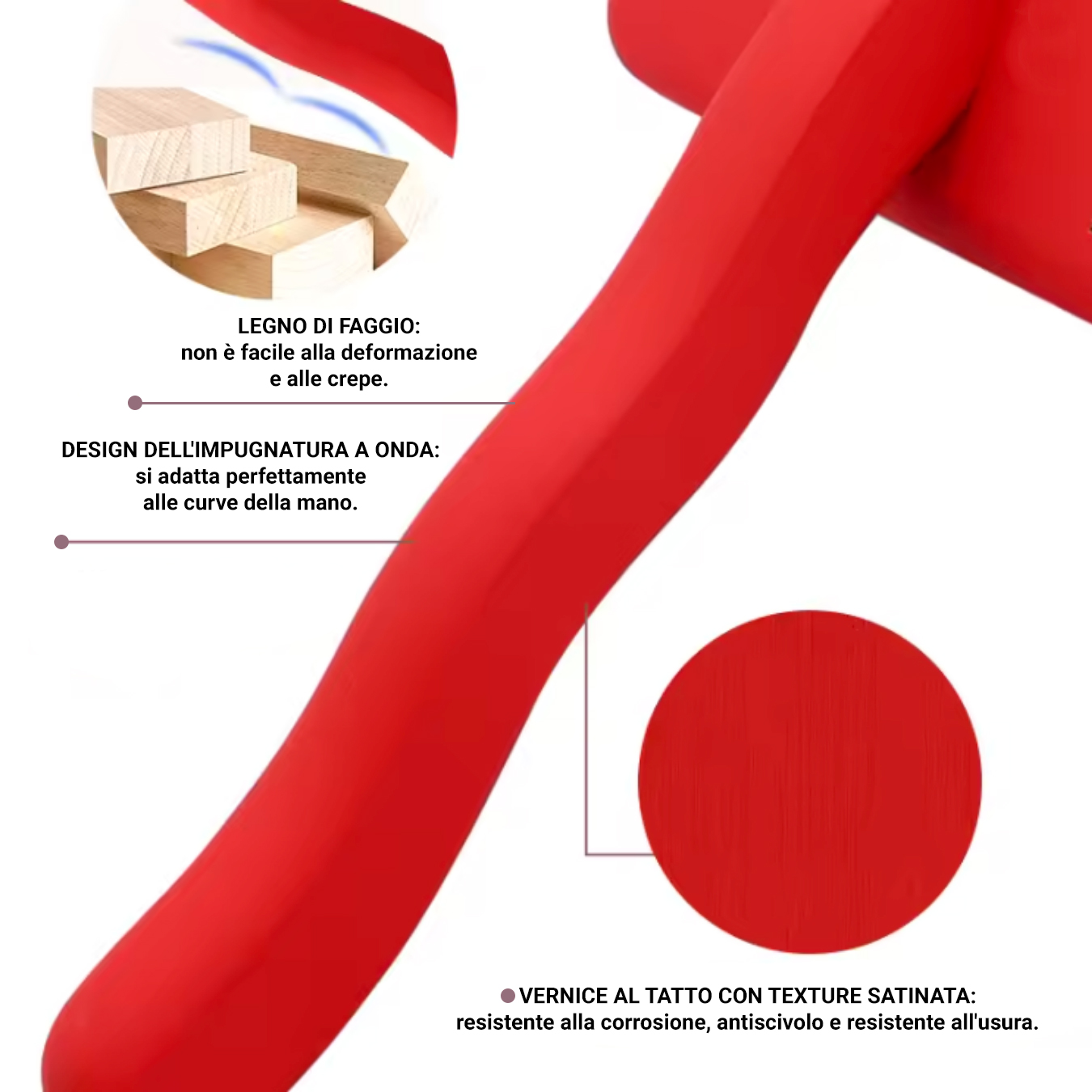 – Materiali di Alta Qualità : realizzato in pregiato legno di faggio, scelto per la sua resistenza alle deformazioni e alle crepe nel tempo.