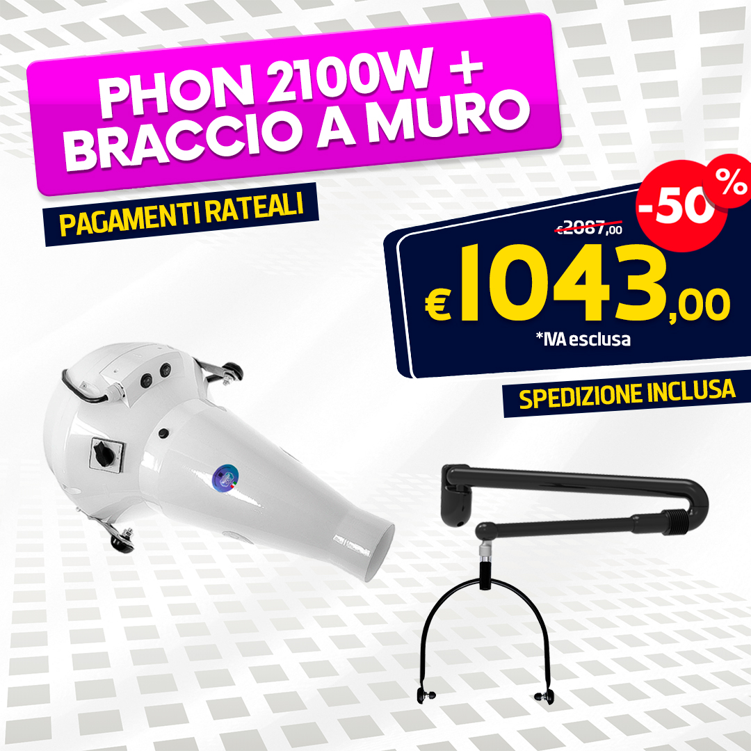 Completo di Braccio a muro (Braccio per phon che copre un raggio di circa 2 mt con rotazione di 180°, movimento verticale del braccio fino a 110 cm)