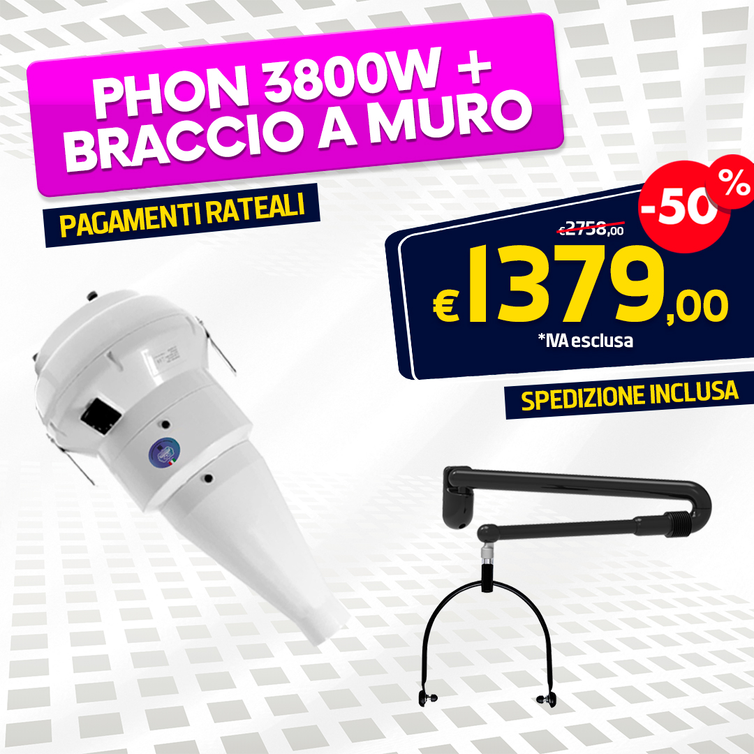 Completo di Braccio a muro (Braccio per phon che copre un raggio di circa 2 mt con rotazione di 180°, movimento verticale del braccio fino a 110 cm)